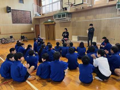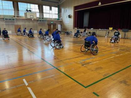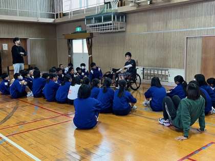 クラスごとに講師の皆さんとの交流もあり、最後には全員で競技用の車イスを使ってレースをしました。
