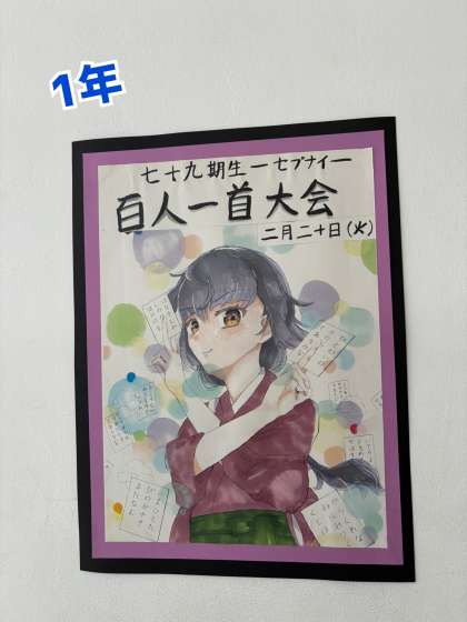 1年校舎の廊下には、2月20日に開催される百人一首大会のポスターが掲示されていました。3組国語係さんの作品とのことです。