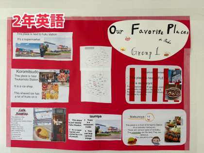 2年校舎の廊下には、英語の授業で取り組んだ "Our Favorite Places in Osaka"