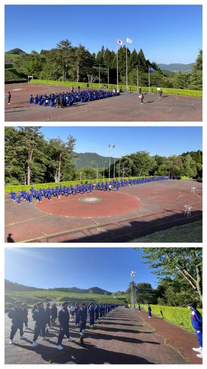 清々しい朝を迎えました。朝の集いでは、ラジオ体操をして校歌を斉唱しました。