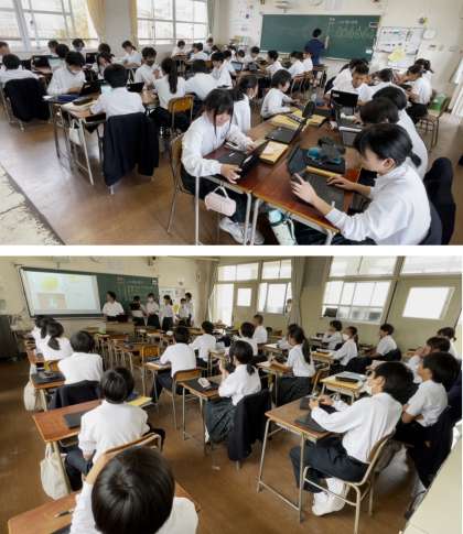 学習者用端末で「Classroom」を活用して、調べた内容をまとめてを班ごとに発表しました。身近な食材を用いることで、理解を深めることができました。