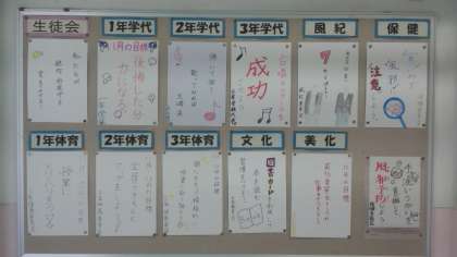 各生徒委員会の月間目標です。目標達成のため、皆さん頑張りましょう。