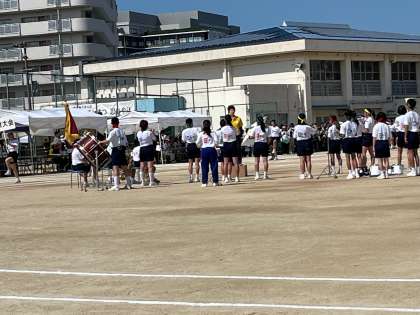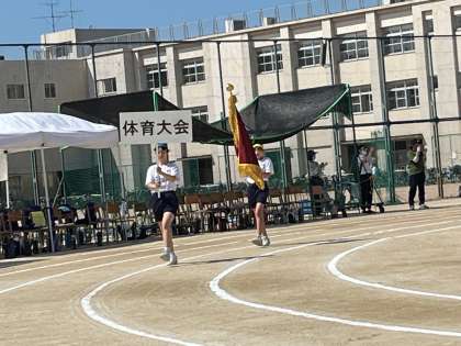 先頭を歩くのは、大会プラカードを持った生徒会副会長と校旗を持った生徒会会長です。