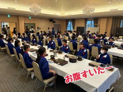 今から入館式、食事、入浴を1,2組と3,4組に分かれて行います。