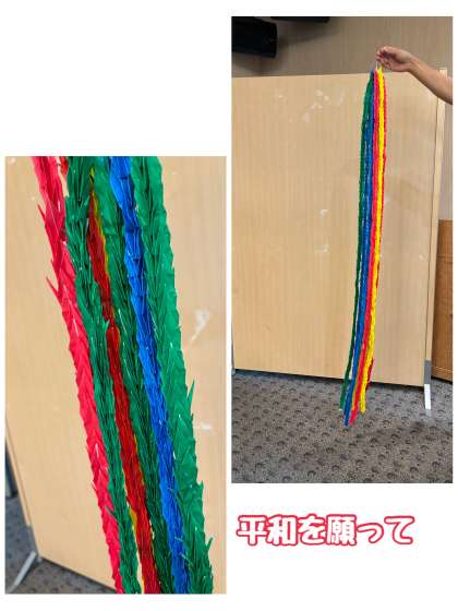 生徒の皆さんは、学校で事前に作成した折り鶴の完成形をここで初めて見ました。