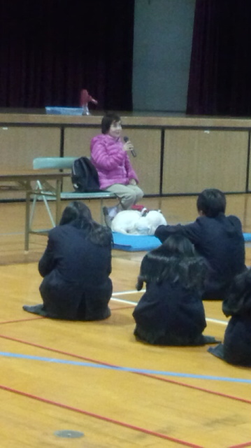 本日、2年生は昨日のアイマスク体験に引き続き盲導犬体験を行いました。盲導犬のユーザーの方より、目が見えなくなってからの苦労・盲導犬の仕事・盲導犬と出会ってからの生活・私たちに望むこと(盲導犬がいるから安心だろうと思わないでほしい、「何かお手伝いしましょうか」と積極的に声をかけてほしい。できないとあきらめずに何事にも挑戦してほしい。)などをお話していただきました。