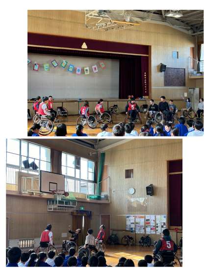 2年生は「パラリンピックキャラバン」車いすバスケットボールの体験をしています。