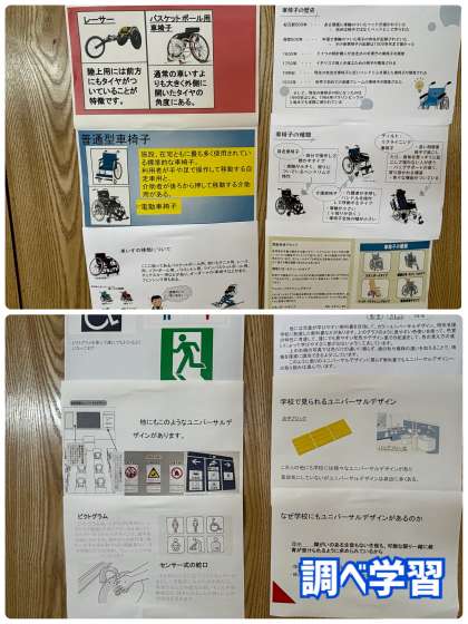 本日の体験授業を受ける前に、各クラスで「車いすバスケットボール」や「学校内のユニバーサルデザイン」について調べ学習を行っていました。