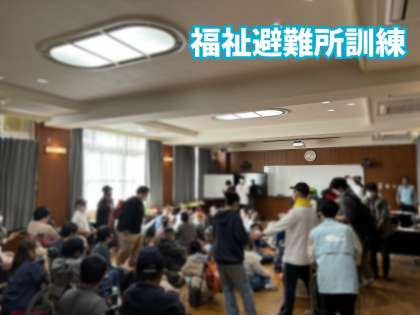 また、第2多目的室では区役所方や学校近くの福祉施設の方、入所者の方が来られて「福祉避難所訓練」を行いました。車いすを利用されている方もいらっしゃるので、避難所への動線などを確認されていました。