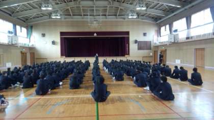 明日の終業式をひかえて、本日、各学年集会を行いました。主に、冬休み中の学習や生活についてお話ししています。また、1・2年生の学年集会では、チャレンジテストについてお話しさせていただきました。この冬休みを有効に利用し、復習をしっかりと行ってください。写真は、上から1年・2年・3年です。