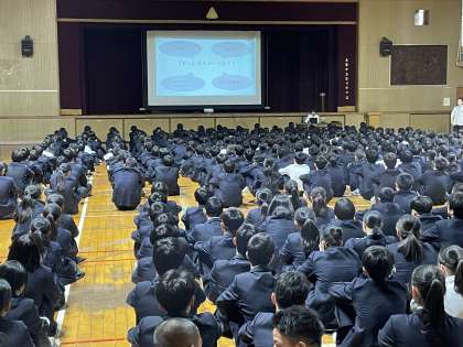 大阪市立総合医療センターの医師を講師としてお招きして、全校生徒に「がん教育」をしました。がんの発生や予防・早期発見、治療についてお話しいただきました。