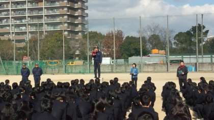 本日、西淀川消防署の方々にご協力をいただき、避難訓練を行いました。「私語が多い」と消防署の方にご講評をいただきました。災害時に、私語が多く先生や放送の指示が聞こえないのは、被害の拡大につながってしまいます。災害はいつ・どこで・どのように起こるかわかりません。また、明日は阪神淡路大震災が起こった日です。防災について、考える機会としてください。