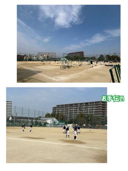 今日、グラウンドでは野球部がオールスターの選手選考会をしています。本校野球部生徒たちもお手伝いをしていました。