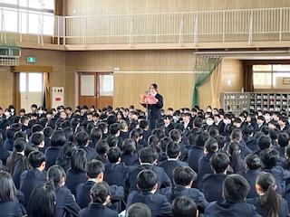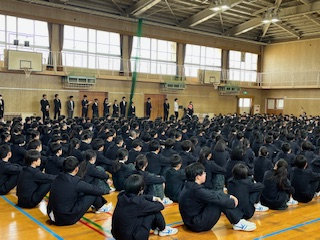 本日、全校生徒そろってのスタートをきりました。始業式、着任式、対面式が行われました。