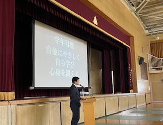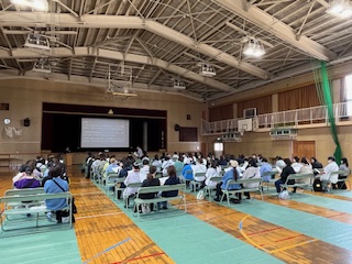 3年生の修学旅行説明会の様子です。学年主任の諏訪先生から、学年の様子や修学旅行の行程、持ち物などについて説明がありました。最後に、当日お世話になる旅行会社の方からも、いろいろ説明していただきました。