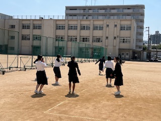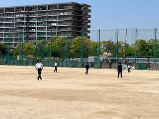 お昼休みの様子です。天気も良く、広いグラウンドで、元気いっぱい遊んでいます。