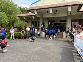 入村式を行う、体育館に集合します。