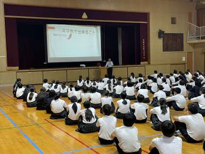 西淀川警察の協力を得て、2年生を対象に非行防止教室を行いました。警察署員の説明でスマホの危険性に触れられた場面では、スマホの正しい使い方について、あらためて意識を高めたようです。