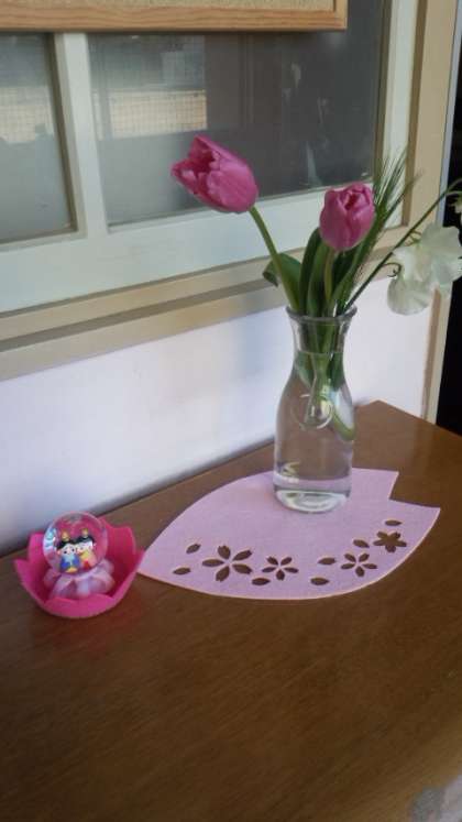 いつもきれいなお花を生けてくださりありがとうございます。また、校長室前の生け花の横には、かわいらしい雛飾りが飾られています。ボランティアの方には心より感謝を申しあげます。