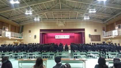 本日、2年生の合唱コンクールを実施しました。最初は2組の発表です。課題曲は「COSMOS」、自由曲は「この星に生まれて」です。