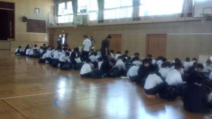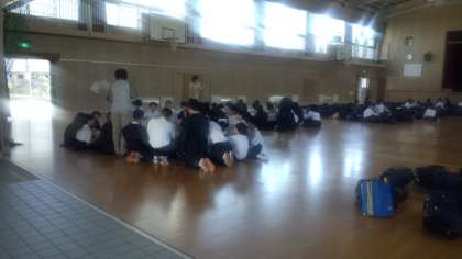 1年生は明日から一泊移住です。本日の6時間目、体育館で事前指導を行いました。しおりをもう一度しっかり読んで、忘れ物が無いように準備しましょう。