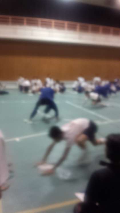 最後の競技です。同じく「雑巾がけリレー」男子の部です。とても盛り上がっています。