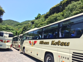 バスに乗車し学校に向かいます。