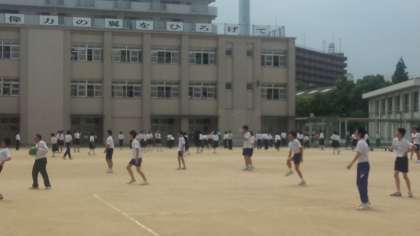 今日の昼休みに、グラウンドで遊んでいる生徒たちを眺めていました。とても蒸し暑い天気ですが、生徒たちは元気いっぱいに遊んでいます。