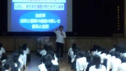 本日の5時間目、3年生は「エイズ・性感染症」をテーマとして、大阪府医師会の福田先生をお招きし、性教育学習を行いました。ご講話の通り、エイズを正しく理解することが大切です。福田先生、ありがとうございました。