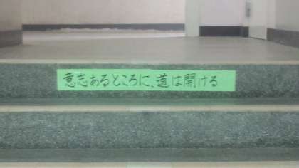東館の階段に貼ってある『意志あるところに道は開ける』という言葉の意味を知っていますか?アメリカ第16代大統領リンカーンの言葉で、「どんなに困難な道でもそれをやり遂げる意志さえあれば必ず道は開ける」という意味です。最初からあきらめてしまって努力をしないのではなく、この言葉を信じ努力を続けることが大切です。3年生の皆さんは強い意志を持っていますか?◯◯高校に行きたいという強い意志のあるところに道は開けます。また、1・2年生の皆さんも、学習や部活動で自分なりの目標に向かって、強い意志を持って日々取り組んでください。