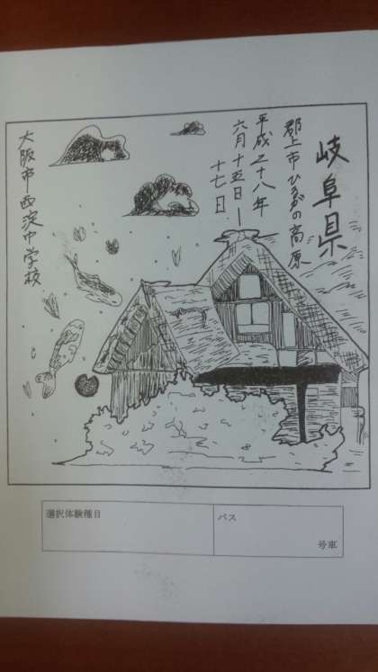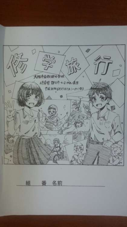 修学旅行のしおりの表紙・裏表紙です。とても素敵な作品です。明日からの3日間、たくさんの思い出をつくってください。