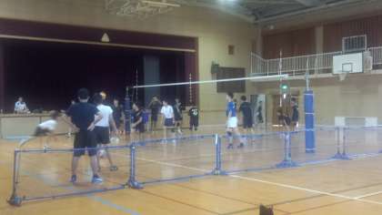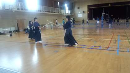 むし暑い体育館ですが、生徒たちは頑張って練習しています。