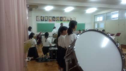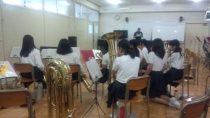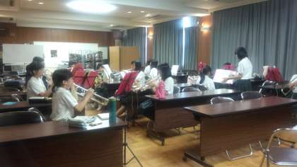 吹奏楽部は、8月から9月にかけて、様々な地域イベントへの出演を予定しています。その準備のため、第2多目的室と音楽室に別れて練習しています。