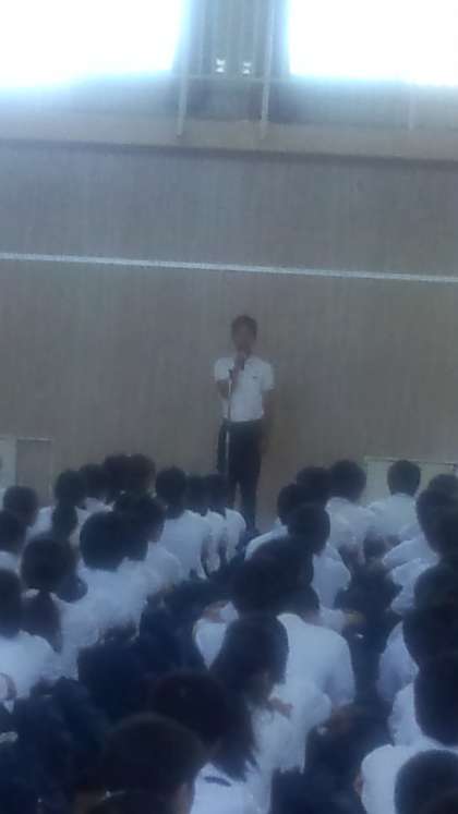 本日、部活動集会を行い各部の部長・キャプテンから決意表明がありました。写真は、「男子陸上競技部」 「サッカー部」の決意表明です。
