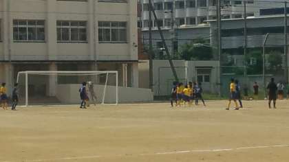 本日、十三中学校にて、4ブロックサッカー大会予選リーグが行われ、本校サッカー部は柴島中学校と対戦しました。