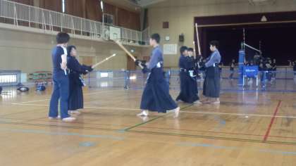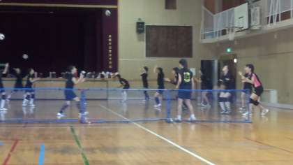 蒸し暑い体育館ですが、女子バレーボール部と剣道部が4ブロック大会に向けて練習しています。頑張ってください。