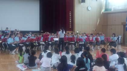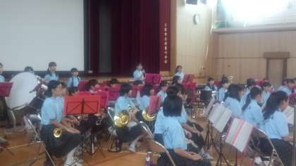本日、「第30回姫里・余呉町子ども会交流交勧会」が盛大に開催され、本校吹奏楽部がお祝い演奏をさせていただきました。