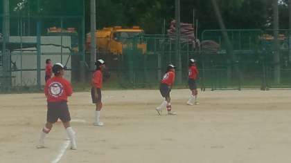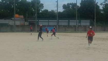 ソフトボール部です。卒業生が練習に参加してくれています。