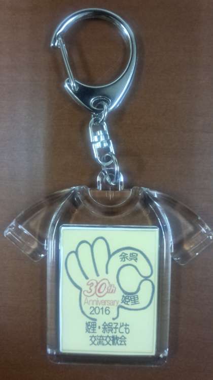 先日、「第30回姫里・余呉町子ども会交流交勧会」にてお祝い演奏をさせていただきましたが、そのお礼として写真のキーホルダーをいただきました。姫里地域の皆様、ありがとうございました。