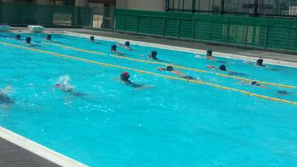 今日から授業開始です。写真は、3年4・5組の授業です。気持ちよさそうに泳ぐ生徒たちの姿が見られました。