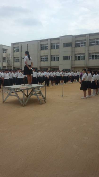 9月21日は体育大会があります。1年生は、中学校生活初めての体育大会となります。2年生は、2回目でもあり、1年生のお手本となるようにしてください。そして、私たち3年生は、中学校生活最後の体育大会になります。最高の思い出となるよう精一杯全力でいきましょう。そのためには、1年生も2年生も日頃の練習を生かし、私たち最後の体育大会を盛り上げるため、協力して欲しいです。西淀中学校全学年で盛り上げ、体育大会を成功させましょう。