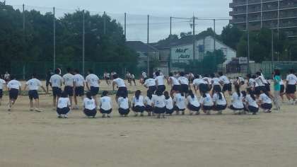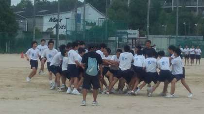 本日、3年生は1・2時間目に学年練習を行いました。1時間目は学年種目「棒引き」の練習を行いました。