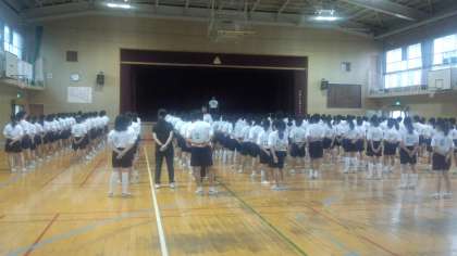 2年生は3・4時間目に学年練習を行いました。行進練習・校歌斉唱・学年種目「台風の目」の練習を行いました。行進は、前回よりとても良くなりましたね。