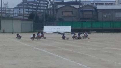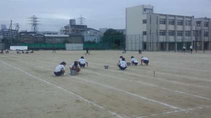 明日の体育大会予行のために、ソフトテニス部とサッカー部の生徒たちが、石ころ拾いやライン引きのお手伝いをしてくれました。ありがとうございました。