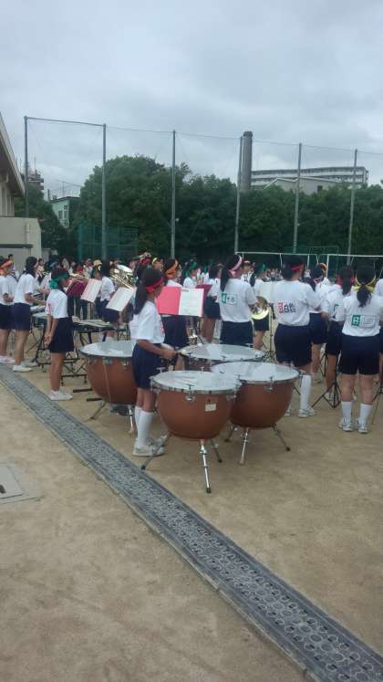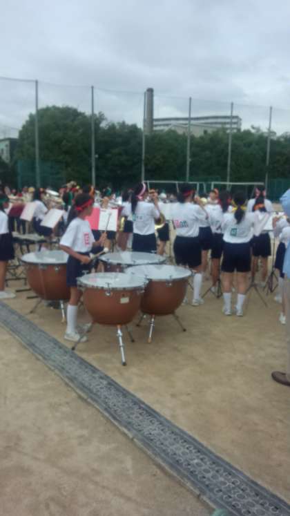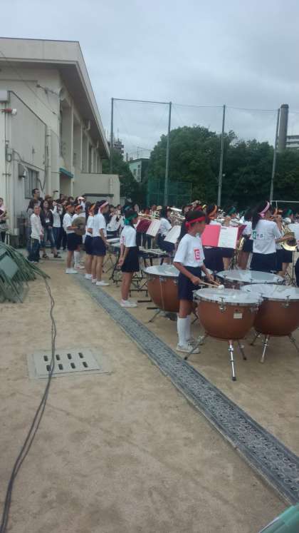 吹奏楽部の演奏で、いよいよ体育大会の開始です。