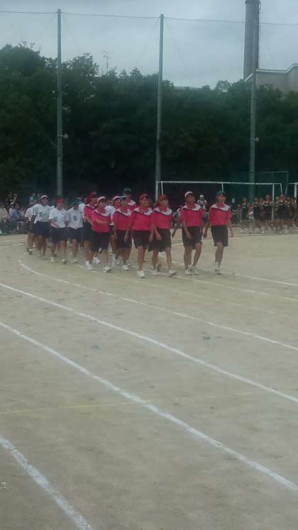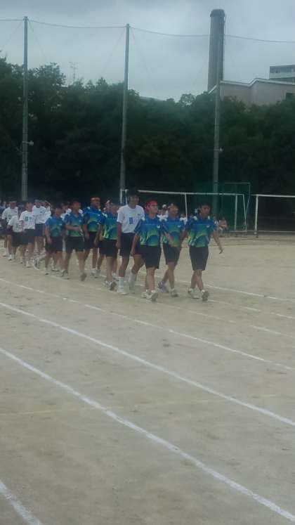 部活動紹介行進(サッカー部・卓球部・ソフトテニス部)です。