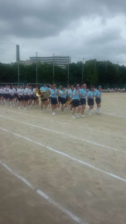部活動紹介行進(吹奏楽部・美術部・PC技術工作部)です。