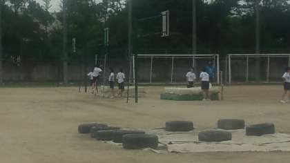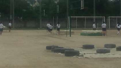 5時間目の1・2組の授業です。男子がバレーボール、女子が走り高跳び(写真)を行っています。