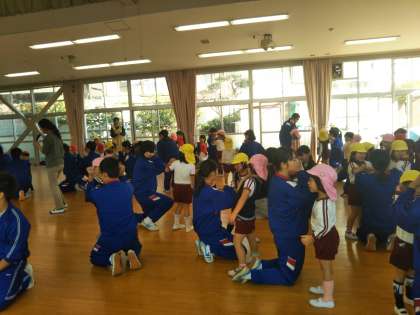 本日、3年4・5組の生徒たちが、姫島幼稚園に実習に行きました。