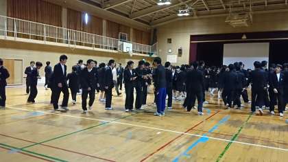 本日の5時間目、3年生は学年お別れ会を行いました。写真は、オープニングとじゃんけん大会の様子です。